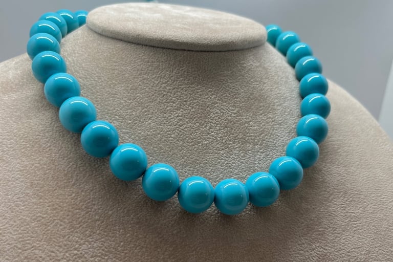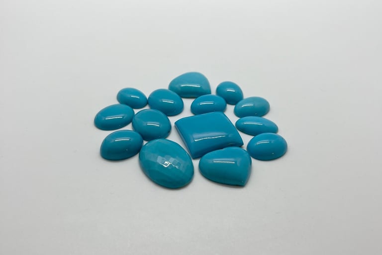 Il turchese è una pietra preziosa rinomata per il suo caratteristico colore blu-verde che spazia dalle tonalità più chiare e trasparenti a quelle più intense e opache. È ampiamente apprezzato per la sua bellezza unica e distintiva, che lo rende una delle pietre più desiderate nel mondo della gioielleria e dell'artigianato artistico.