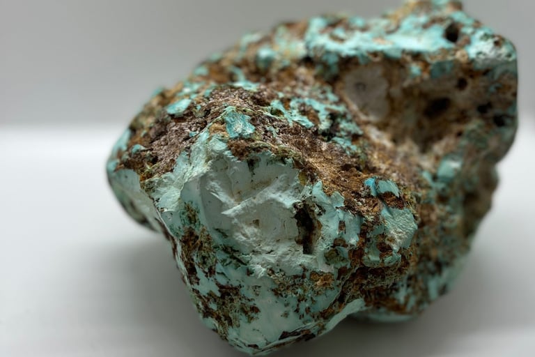 Da un punto di vista chimico, il turchese è principalmente composto da fosfato di rame idrato, ma può anche contenere tracce di altri minerali come calcite, limonite e pirite, che influenzano la sua colorazione e la sua composizione. Si forma in ambienti geologici che presentano rocce ricche di rame e minerali di fosfato. Questo processo di formazione può richiedere milioni di anni e coinvolge la deposizione di minerali in condizioni di basso contenuto di ossigeno.